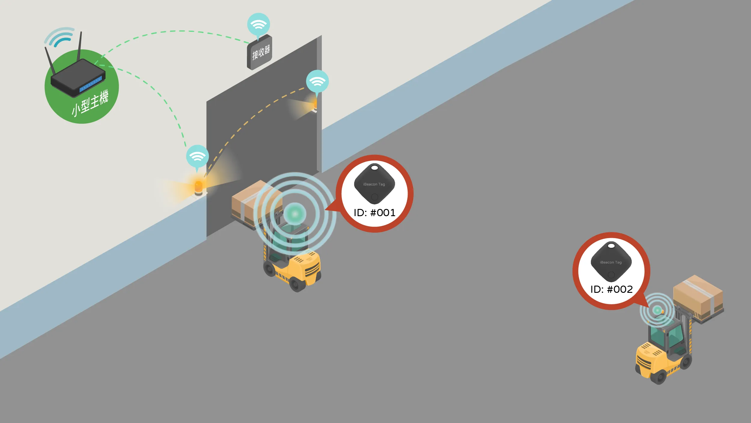 針對業主需求,我們提出的解決方案是UWB(或藍牙)車輛感知系統。UWB(或藍牙)車輛感知系統規劃於叉車上安裝 UWB Tag(或iBeacon Tag) , 另在牆上設置無線接收器,以及警示燈 ,LED警示燈可設置多組連動 ,且可與接收器一體或獨立安裝於任何地方, 藉由 UWB Tag(或iBeacon Tag) 訊號強弱作為叉車與警戒區的距離判別依據,結合本地端小型主機,當系統判斷出車輛接近警戒區時,即時發出警報(燈光及聲響) 提醒人員注意 (LED燈可設置多組連動),除了提升人員安全, 也降低須派員在每個出入口管控的人力成本。